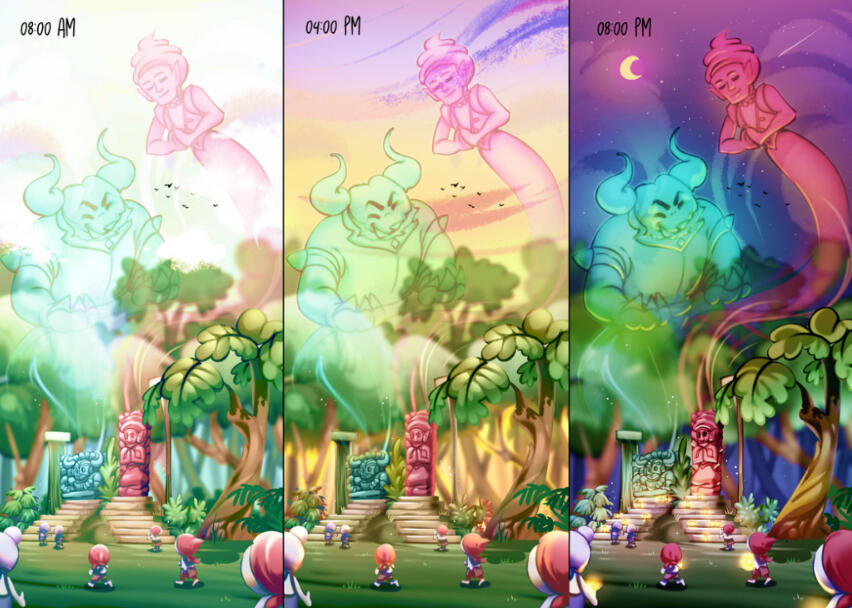 Temple Rumble was inspired by the religious tolerance issue that happening nowadays. A story told through 2 beliefs, Radhoism (Earth God) and Samwaism (Altar God). Their follower fought each other to show whose God is the best. This story tells us that we can not put aside the differences in every personRoles